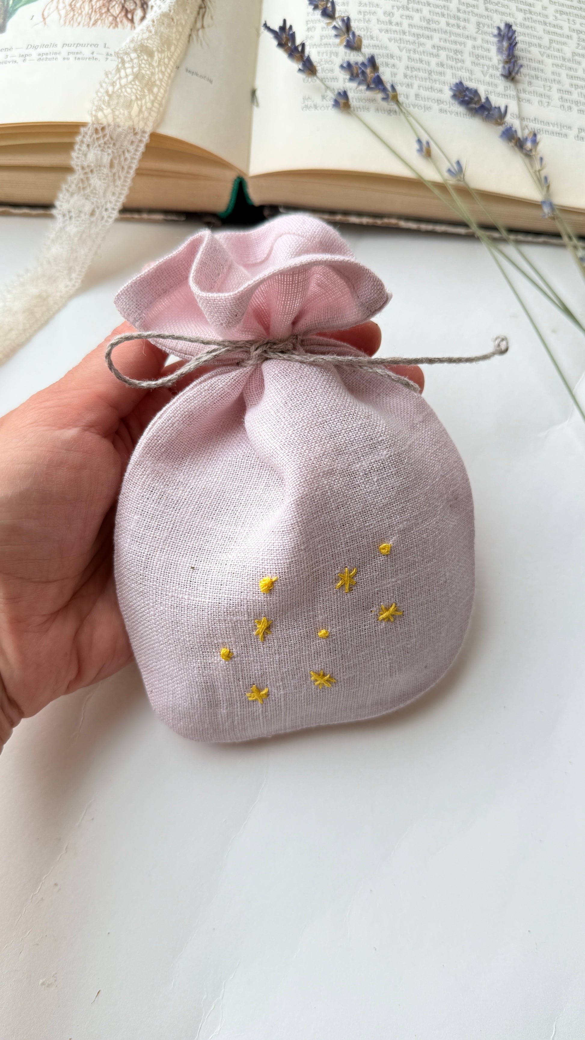 Lininis maišelis 10cmx15cm, užrišamas linine virvele.