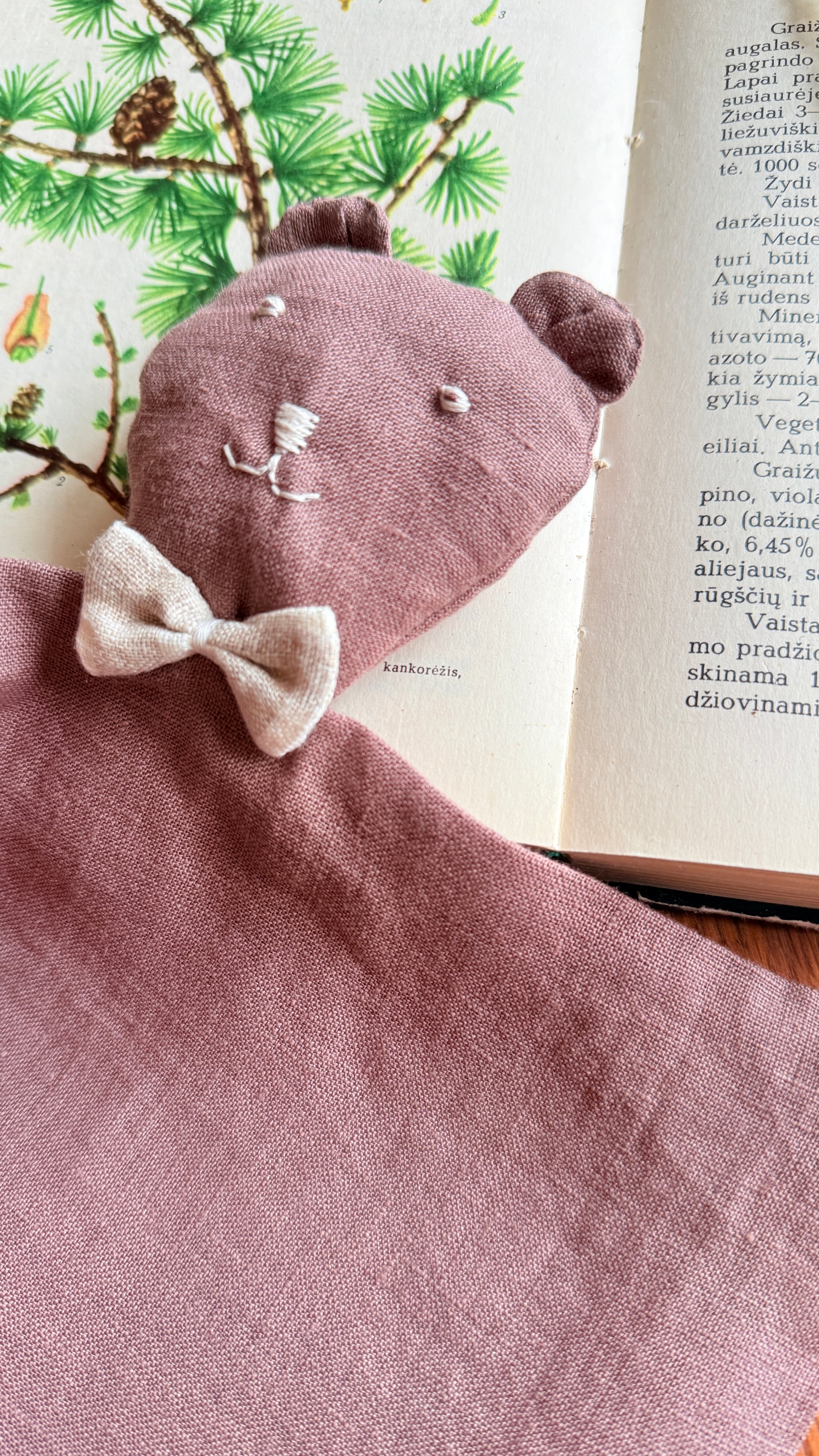 Priežiūra: stačiakampę detalę skalbti rankomis, muiluotame vandenyje, 30 laipsnių temperatūroje. Žaisliuko galvą stengtis nemerkti į vandenį ir plauti švelniai šepetėliu. Gerai išdžiovinti. Stačiakampę detalę lyginti lino rėžimu.
