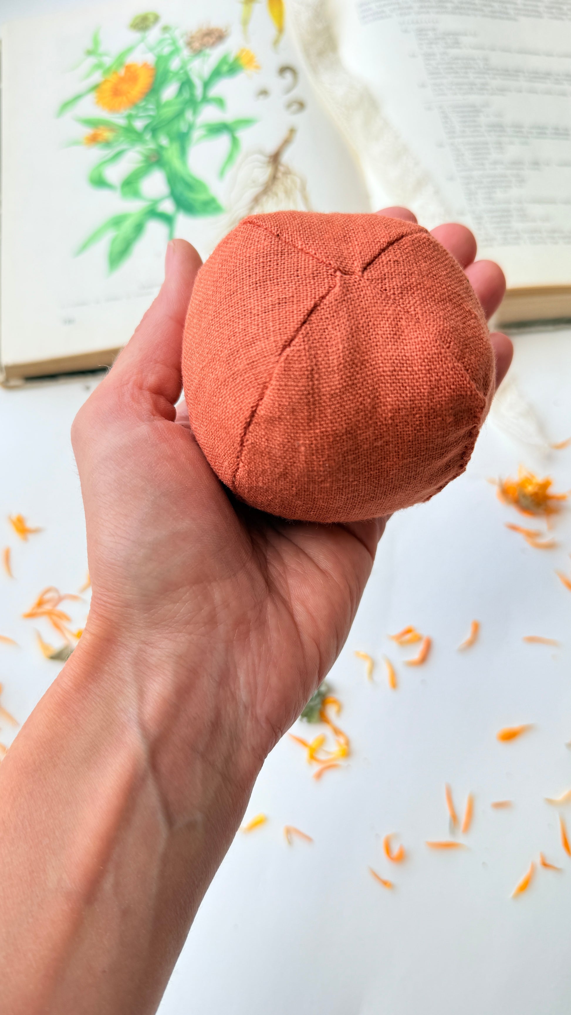 Rankoje laikomas kamuoliukas “atgyja”…įkvepiu levandų, melisų, medetkų aromato. Girdžiu, kaip maloniai šiugžda grikių lukštai ir auga kūrybos galia.